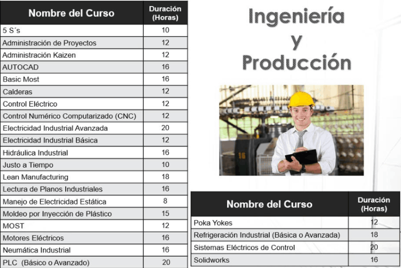 Gran variedad de cursos sobre Ingeniería y Producción